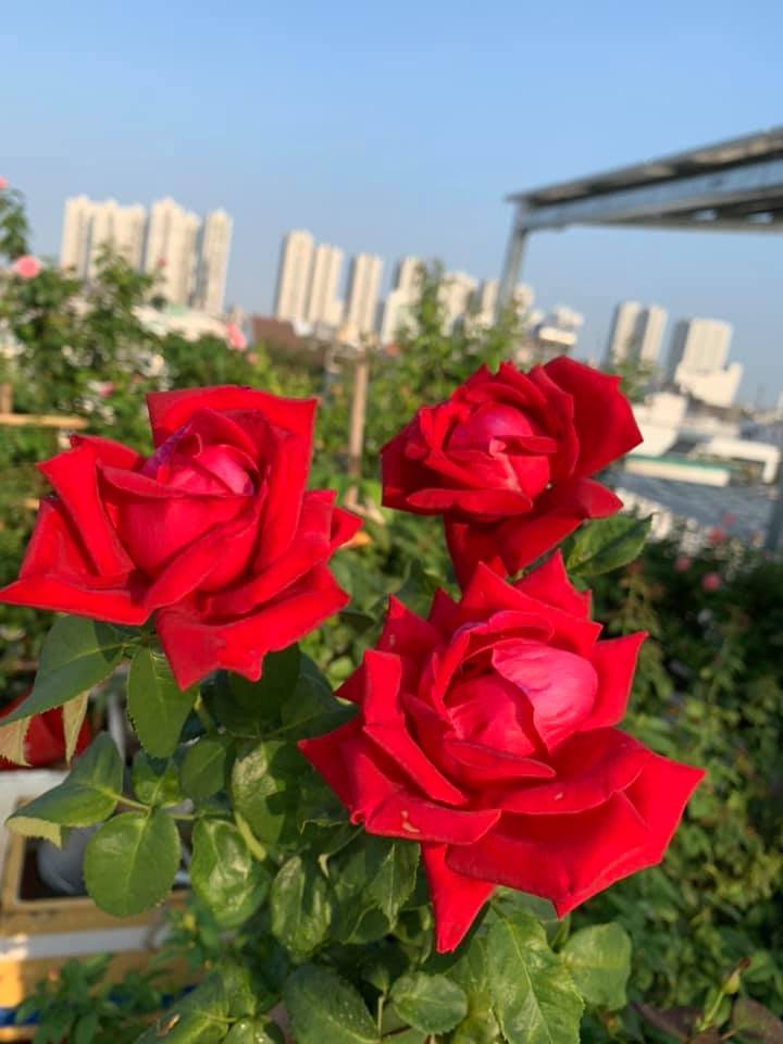 Mỗi bông hoa nở ra như một đóa nhung đỏ tinh tế, các cánh hoa dày xếp khít chặt chẽ, cuộn nhẹ vào tâm, tôn lên vẻ quyến rũ, đằm thắm và kiêu sa.