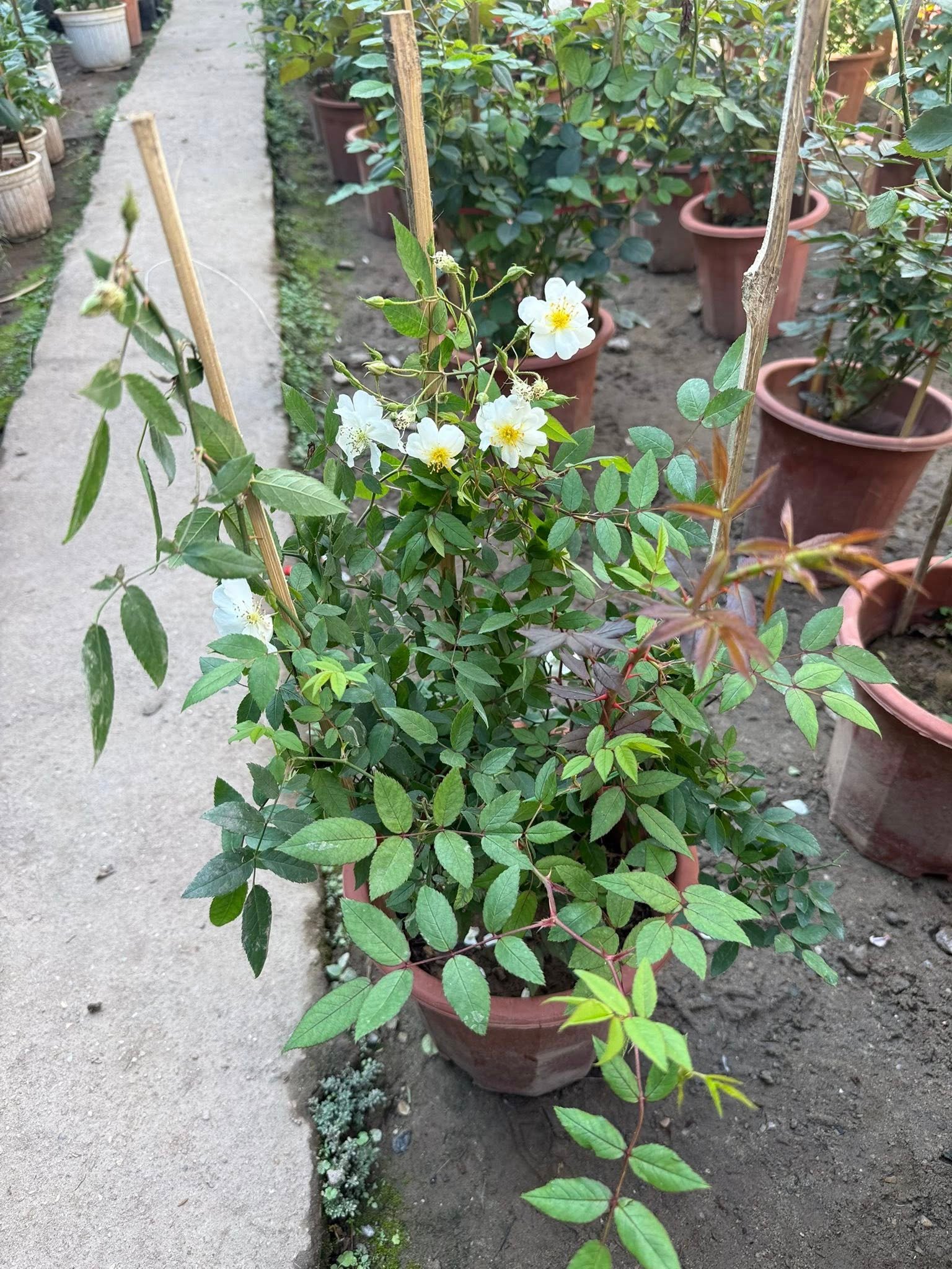 🌹 Hoa Hồng Darlow’s Enigma – Hồng Cánh Đơn Trắng Muốt, Nở Chùm Sai, Hương Thơm Dễ Chịu
