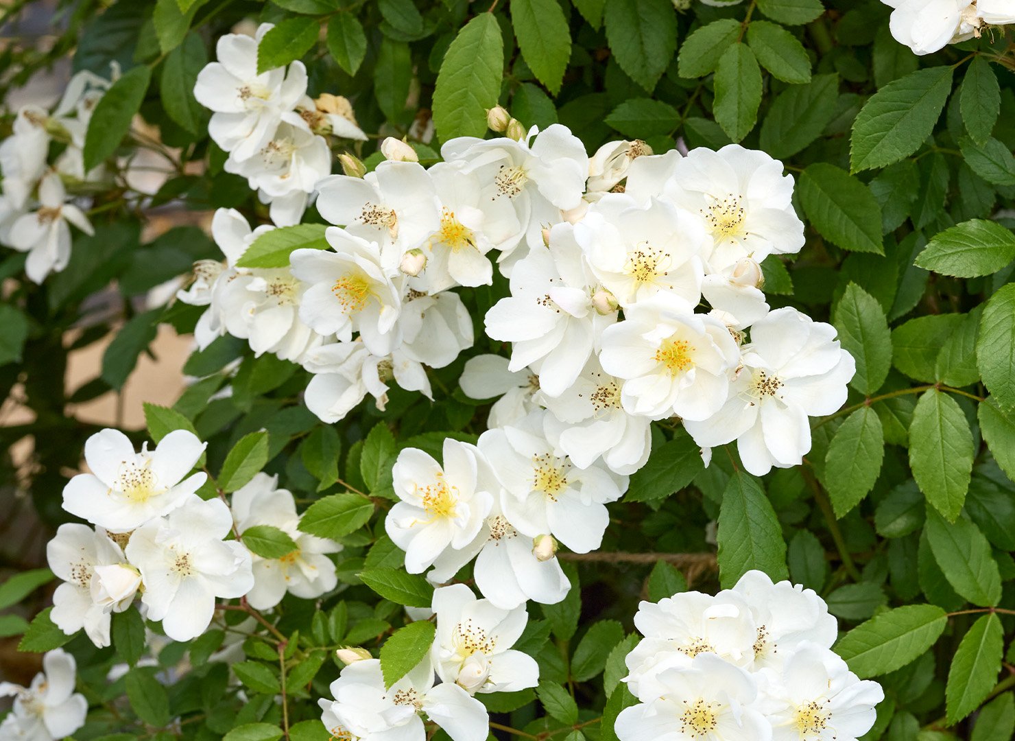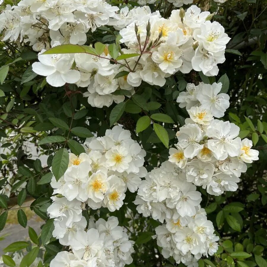 Giống hồng này mang phong thái cổ điển, mộc mạc, phù hợp với những khu vườn yêu sự tự do – hoang dã có kiểm soát. Khi nở rộ, cả bụi hoa trắng điểm nhụy vàng tạo cảm giác sáng bừng khu vườn nhưng không hề gắt mắt.