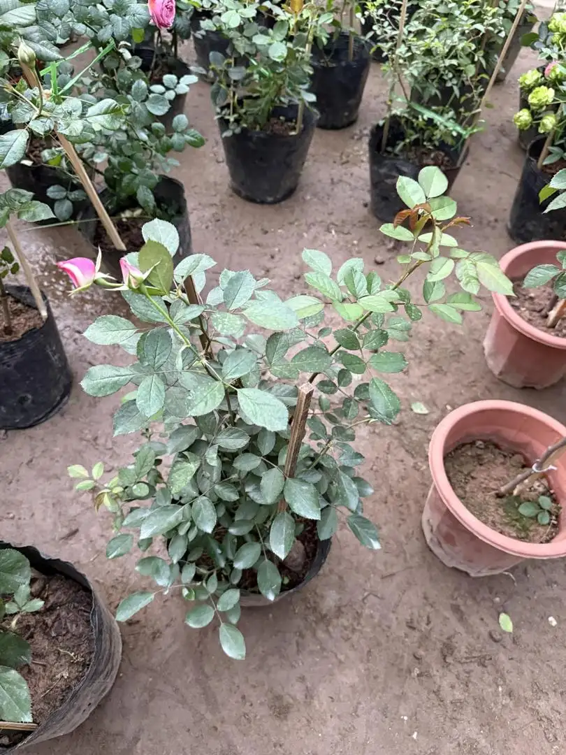Cây giao cao khoảng 30–40cm, bụi khỏe, đã bén rễ tốt; có thể có nụ hoặc hoa tùy đợt. Màu hoa có thể đậm – nhạt theo thời tiết và ánh nắng, đây là đặc tính tự nhiên của dòng hồng cánh đơn.
