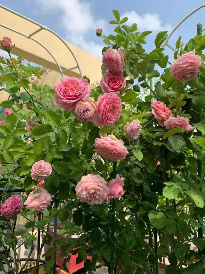 Không chỉ đẹp, Bienvenue còn được đánh giá cao nhờ khả năng leo khỏe, hoa nở lặp ổn định, rất phù hợp để tạo mảng hoa lớn cho không gian sống.