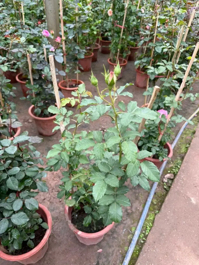 Cây giao cao khoảng 30–40cm, đã bén rễ tốt; có thể có nụ hoặc hoa tùy đợt. Màu hoa Bienvenue có thể đậm – nhạt theo nắng và thời tiết, đây là đặc tính tự nhiên của giống hồng leo ngoại.