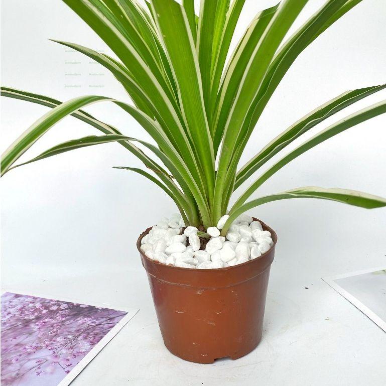 + Lá lan bạċh chỉ hình kiếm thuôn dài, hơi nhọn ở đầu, uốn cong cong xuống dưới trông rất mềm mại. Lá màu xanh đậm tươi tắn, bóng,đẹp, hai bên mép lá có hai dải màu trắng hoặc vàng mang đến cho cây điểm nhấn hài hòa, bắt mắt. Lá cây mọc trực tiếp từ gốc nằm sâu dưới đất