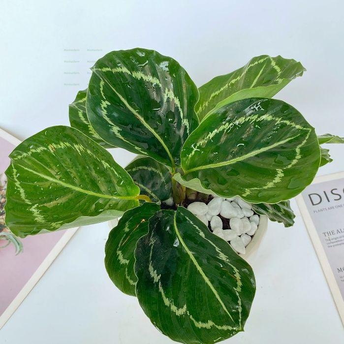 - Lá có màu xanh táo nhẹ nhàng, vân lá độc đáo, giúp không gian thêm sinh động.