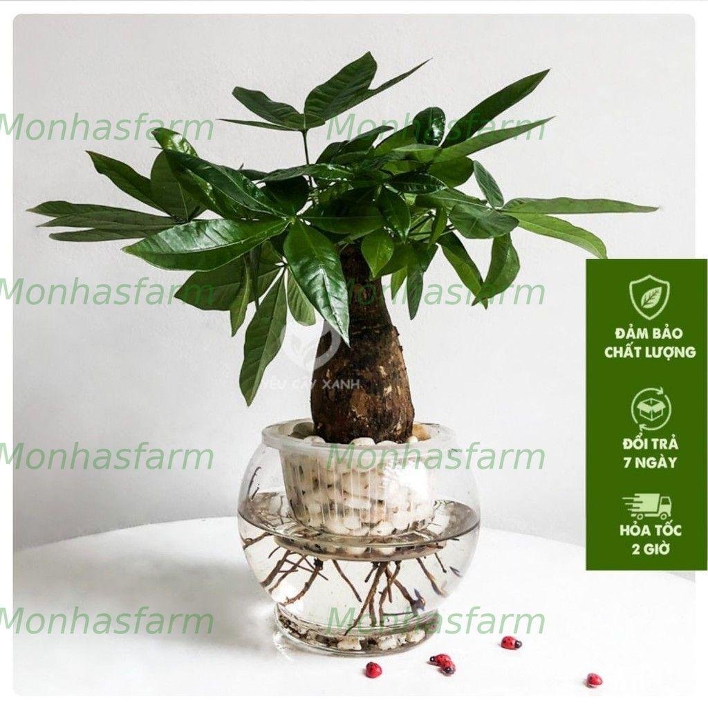 Chiều cao khoảng 25cm, cây trồng trong bình thủy sinh trong suốt, rễ trắng khỏe, nước sạch đã xử lý, sẵn sàng trưng bày.