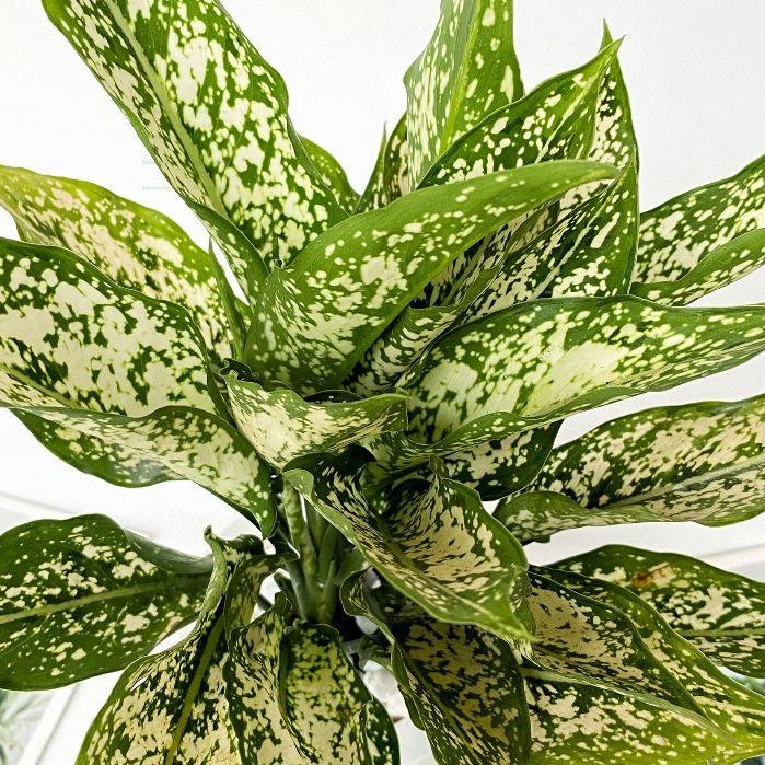 - Lá xanh viền trắng độc đáo, mềm mại, tạo vẻ đẹp tinh tế và nhẹ nhàng.