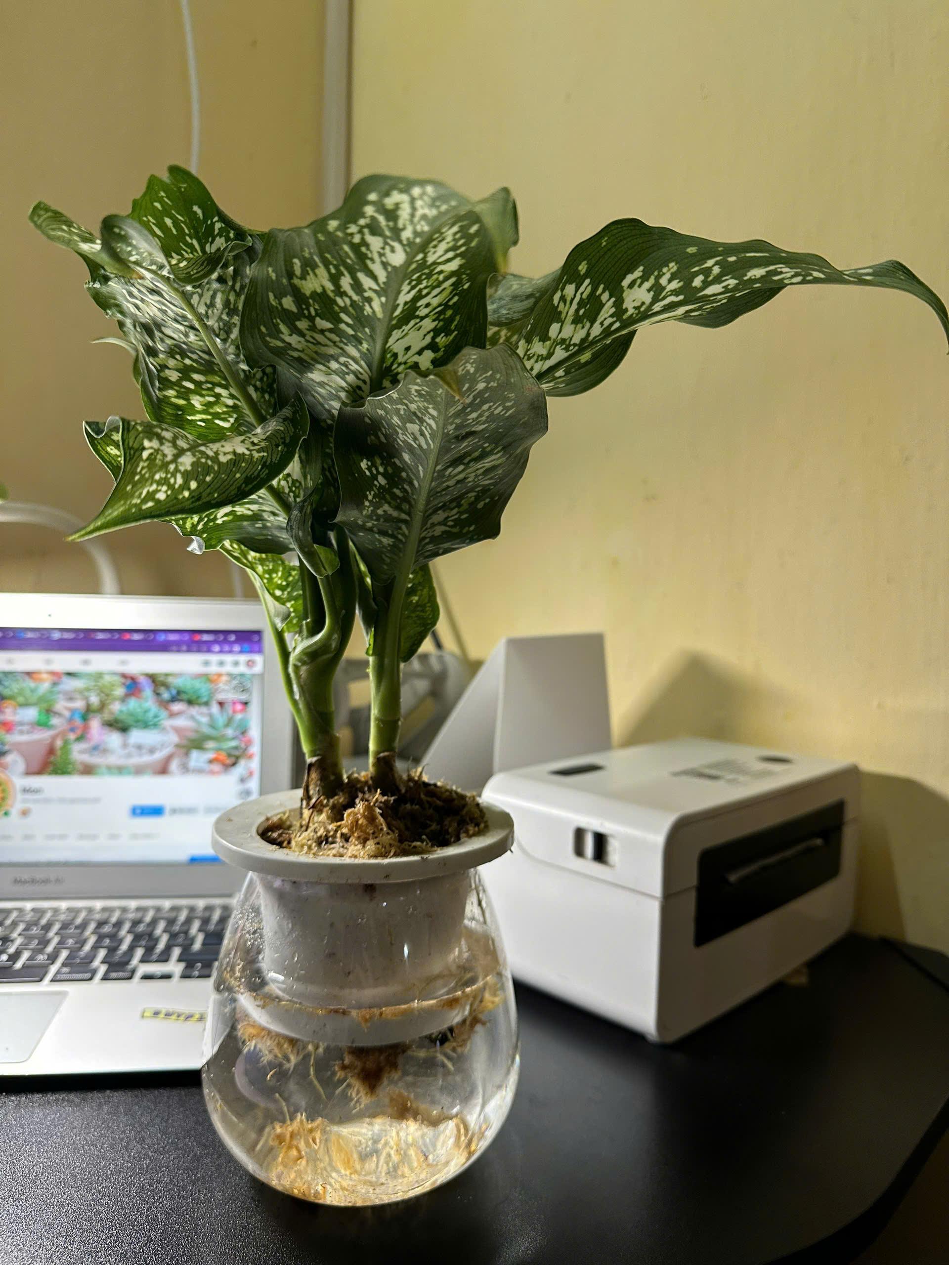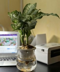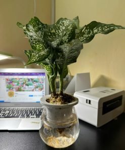 Cây Ngọc Ngân thủy sinh cao 25cm, với tán lá pha trộn giữa xanh và trắng nổi bật, là lựa chọn hoàn hảo để trang trí bàn làm việc, quầy lễ tân, phòng khách. Cây dễ chăm sóc, mang lại cảm giác tươi mát, giúp không gian thêm sinh động.
