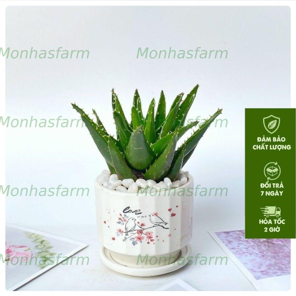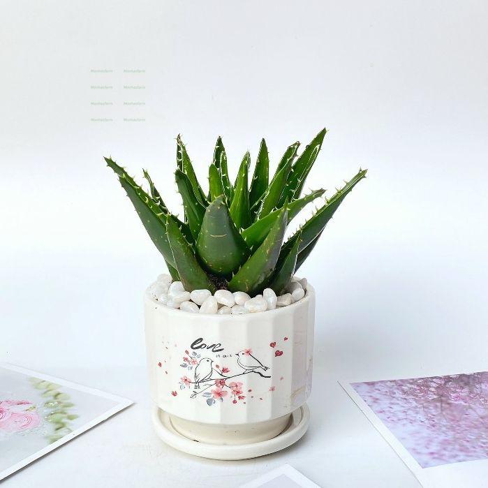 Cây Nha Đam (Aloe Vera) là loại cây có sức sống bền bỉ, lá xanh mọng nước, không chỉ giúp trang trí mà còn có khả năng thanh lọc không khí hiệu quả. Với chiều cao khoảng 15cm, cây nhỏ gọn, thích hợp để trang trí bàn làm việc, phòng khách, kệ sách hoặc quầy lễ tân. Dễ chăm sóc, thích nghi tốt với nhiều điều kiện môi trường, cây giúp không gian thêm xanh mát và thư thái.