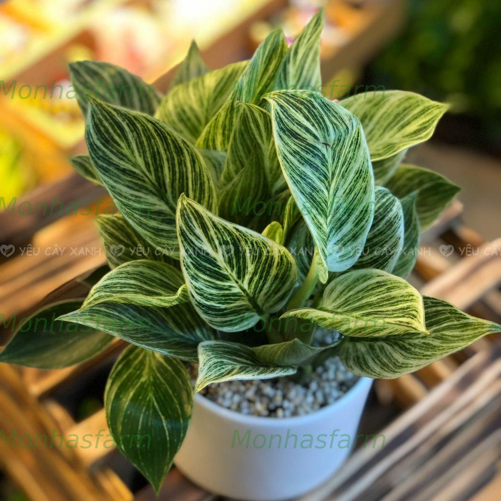 Cây Trầu Bà Đế Vương Kim Cương – Trầu Bà Đế Vương Sọc, Trồng Chậu Sứ, Trang Trí Bàn Làm Việc