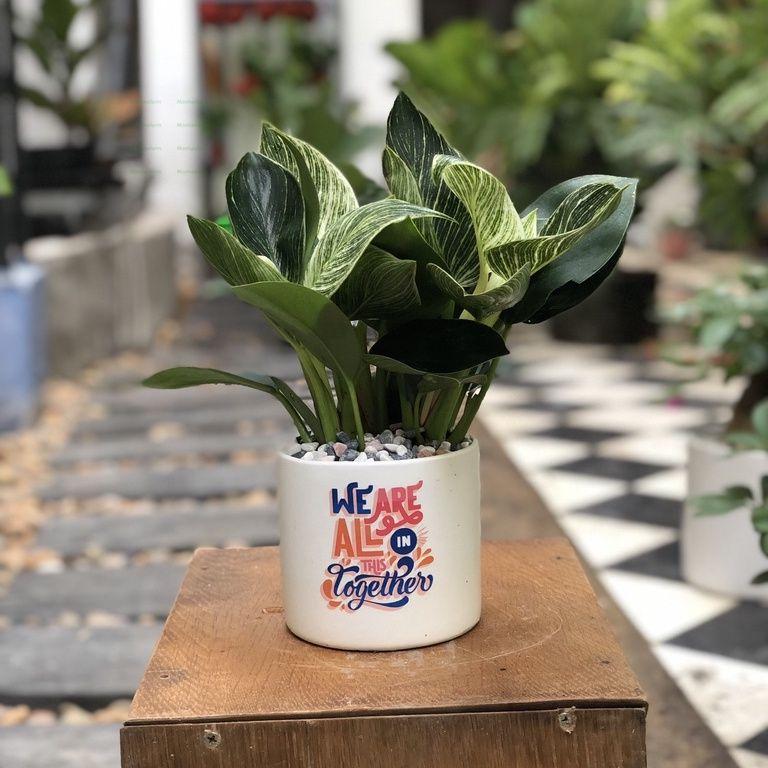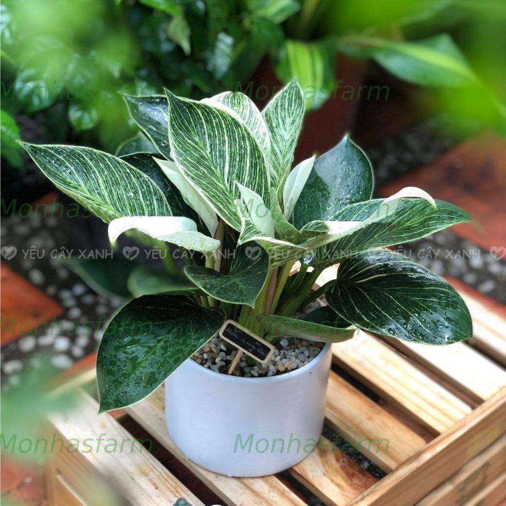 Cây Trầu Bà Đế Vương Kim Cương – Trầu Bà Đế Vương Sọc, Trồng Chậu Sứ, Trang Trí Bàn Làm Việc
