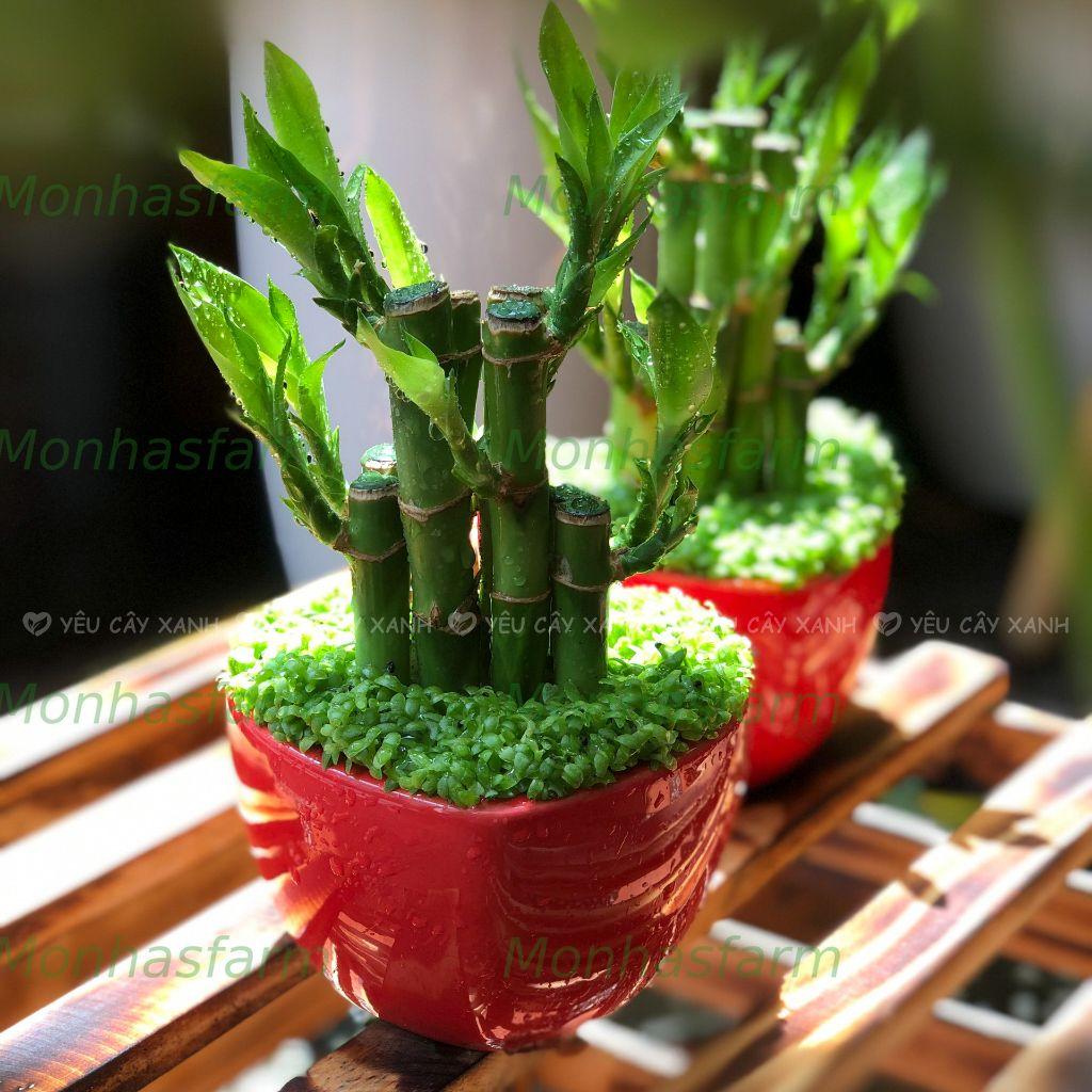 Cây Trúc Phú Quý – Phát Tài – Phát Lộc, Kèm Chậu Ngẫu Nhiên, Chiều Cao 15cm, Trang Trí Bàn Làm Việc