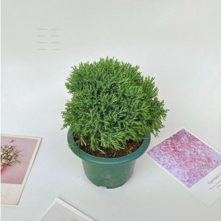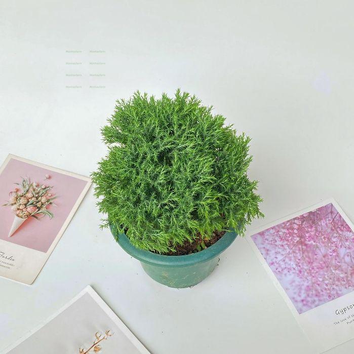 Cây Tùng Bồng Lai nổi bật với dáng cây nhỏ gọn, tán lá xanh tươi, mềm mại như mây, mang đến cảm giác thanh thoát và sang trọng. Với chiều cao khoảng 15cm, cây thích hợp để trang trí bàn làm việc, phòng khách, kệ sách hoặc quầy lễ tân. Sức sống bền bỉ, dễ chăm sóc, cây còn được xem là biểu tượng của tài lộc, may mắn và sự thịnh vượng.