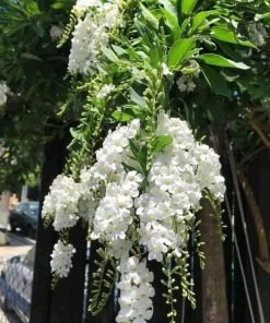 Chuỗi ngọċ trắng và tím đậm, hoa nở quanh năm . Cây sống lâu năm, hoa nở từng chùm dài 15-20cm. Trồng ban công, lối đi, bồn cây rất đẹp. Hoa rũ trông thật đáng yêu.