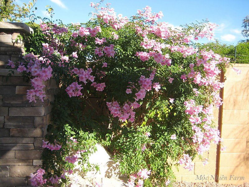 Hoa Hồng Thiên Hương – loài hoa mang vẻ đẹp dịu dàng và tinh khôi, được ví như “dải lụa hồng phớt của mùa xuân”. Cây thuộc họ Đinh Lăng Chuông (Bignoniaceae), có nguồn gốc từ Úc, là giống hoa leo thân gỗ lâu năm, rất được ưa chuộng tại Việt Nam vì vừa đẹp, vừa dễ trồng, lại nở quanh năm.