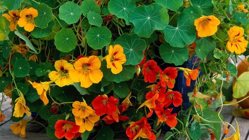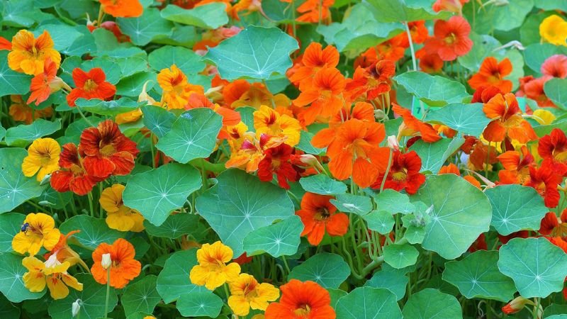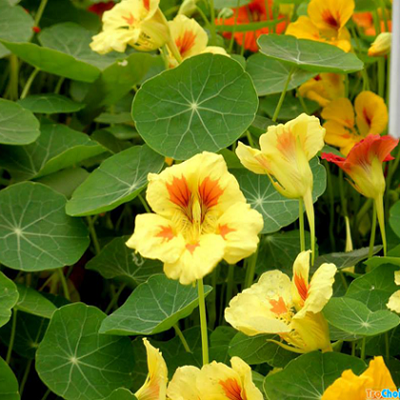 Hoa Sen Cạn (Tropaeolum majus) là loài hoa thân thảo leo bụi, nổi bật với sắc hoa cam, đỏ, vàng rực rỡ như ánh nắng. Cánh hoa tròn xinh, lá xanh hình khiên độc đáo, vừa đẹp vừa lạ mắt. Khi nở rộ, hoa tỏa sắc trên nền lá xanh mướt, khiến cả khu vườn trở nên sống động và rực rỡ.