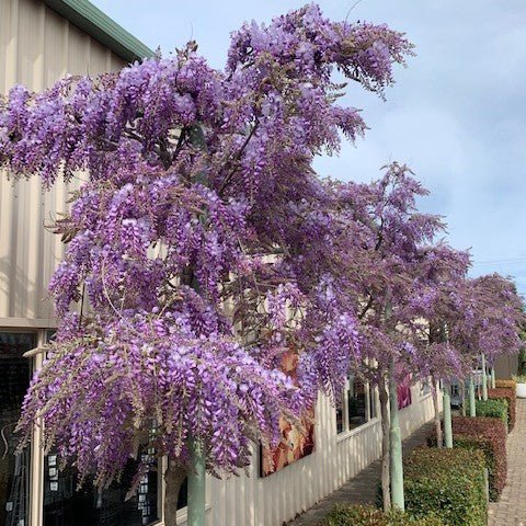 Đặc biệt, giống Tử Đằng thân gỗ có sức sống bền bỉ, leo khỏe, hoa nở dày thành chùm dài 30–50cm, tỏa hương ngọt ngào, khiến không gian trở nên vừa lãng mạn vừa sang trọng. Trong phong thủy, Tử Đằng tượng trưng cho tình yêu thủy chung, sự viên mãn và thịnh vượng.