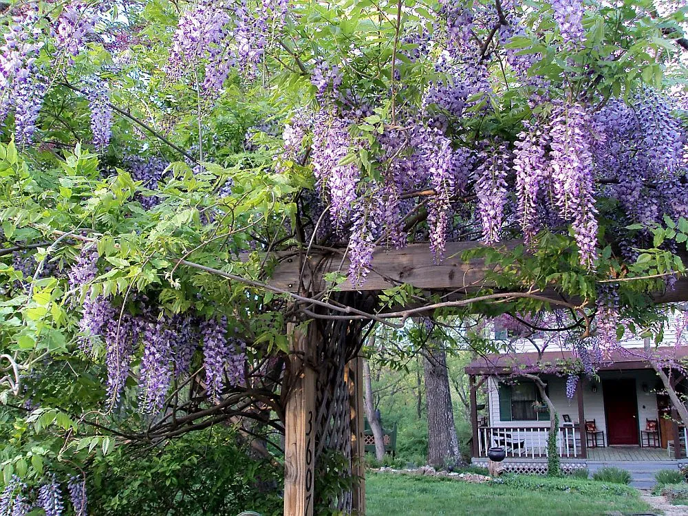 Trồng Tử Đằng ở giàn, cổng, ban công hay sân vườn, bạn sẽ có một khung cảnh đẹp tựa cổ tích, nơi hoa tím buông rủ trong gió, mang đến cảm giác an yên và hạnh phúc.