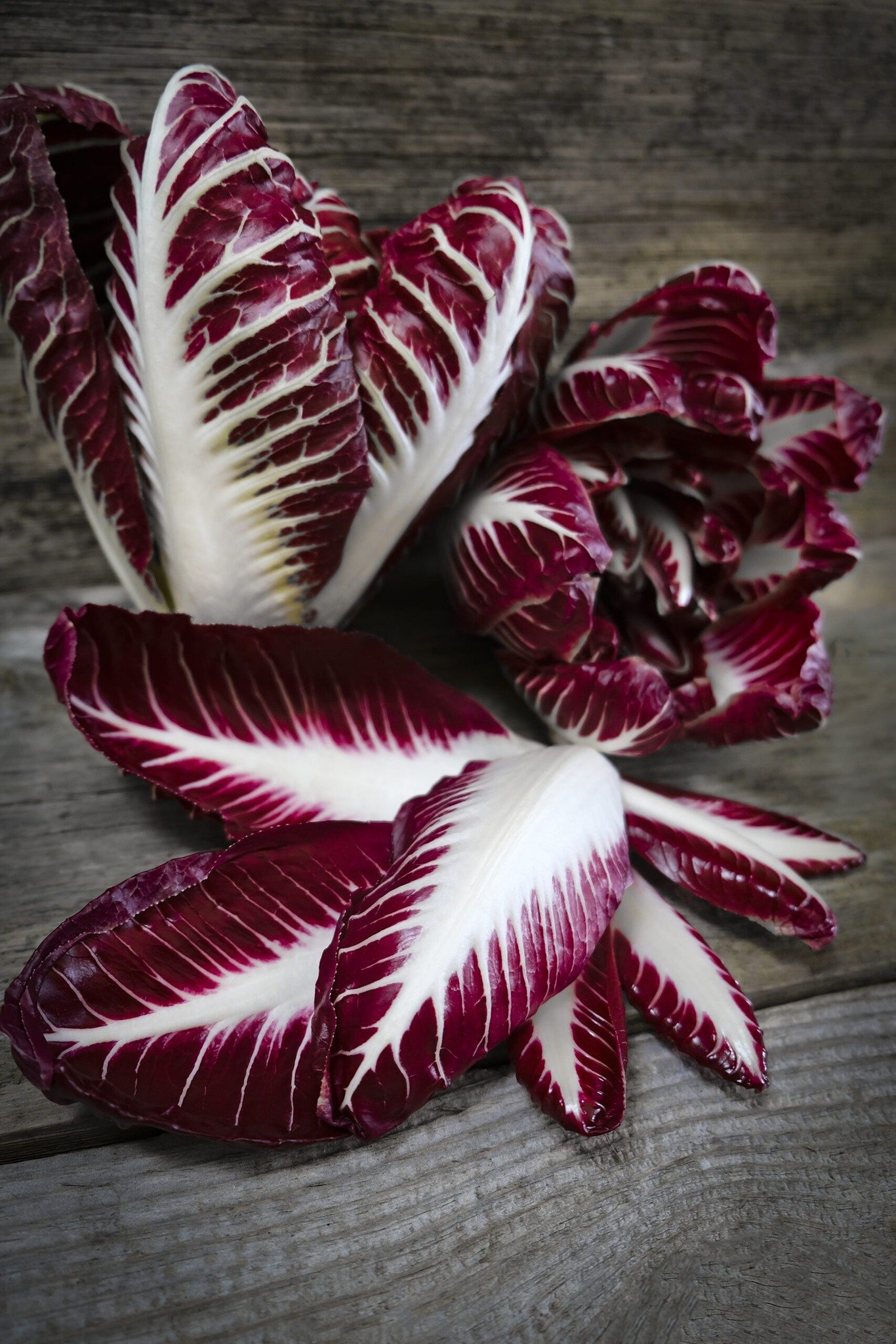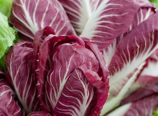 Không giống như những loại rau xanh thông thường, Radicchio có lá màu đỏ tím ánh rượu vang, gân trắng sáng rõ, thân hình thuôn dài như cải thảo non, tạo nên vẻ đẹp sang trọng và rất “châu Âu”.