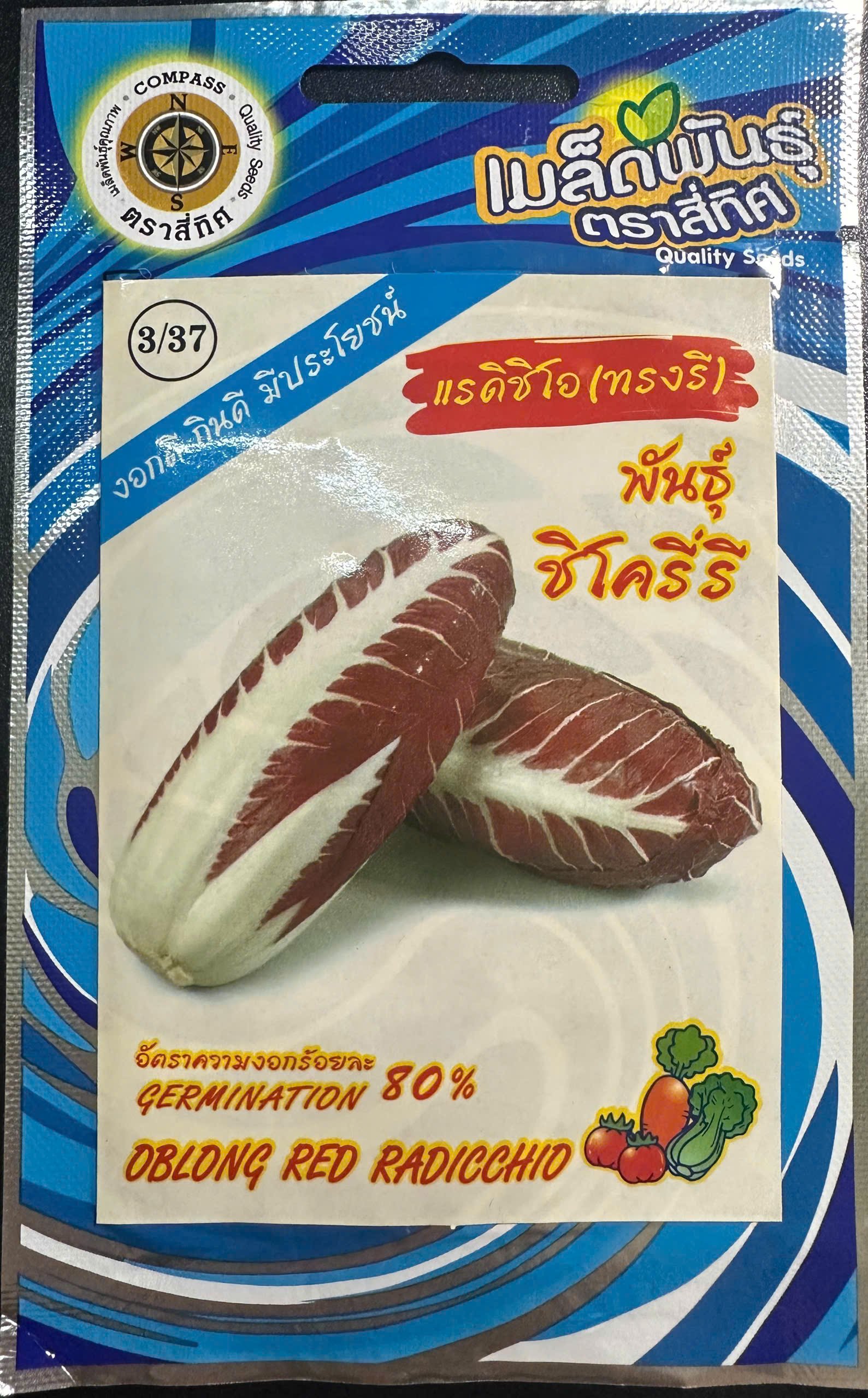 📌 Lưu ý: Hình ảnh có thể chụp cận khiến lá trông lớn hơn thực tế. Sản phẩm gồm 2gr hạt giống Xà Lách Cải Thảo Đỏ Dài Radicchio, nhập khẩu từ Thái Lan – giống rau cao cấp với sắc đỏ tím rực rỡ, lá giòn ngọt, nhẹ vị đắng thanh, được ưa chuộng trong các món salad và ẩm thực châu Âu.
